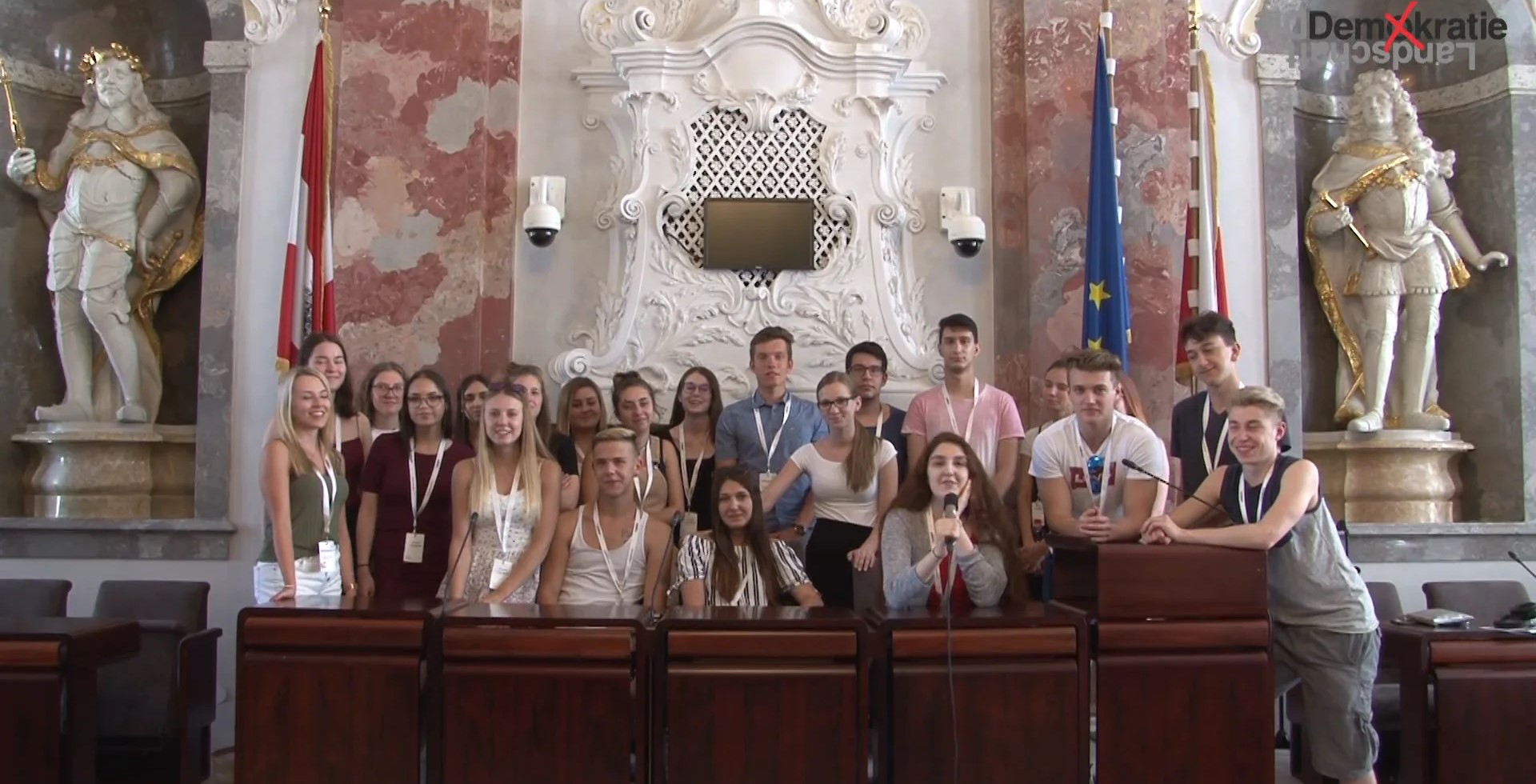 Agentur Müllers Freunde > Demokratie, Demokratievermittlung, Landtag Tirol, Mediendidaktik, Mitbestimmung, Mitbeteiligung, Partizipation, Politik, politische Bildung > Medienprodukte Werkstatt für Demokratie in Oberösterreich 2019 > Tirol2019_2_ 24062019 4AK HAK Telfs -Dein Landtag und die EU- _ps