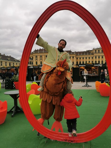Müllers Walkingact auf Stelzen beim Ostermarkt am Schloss Schönbrunn